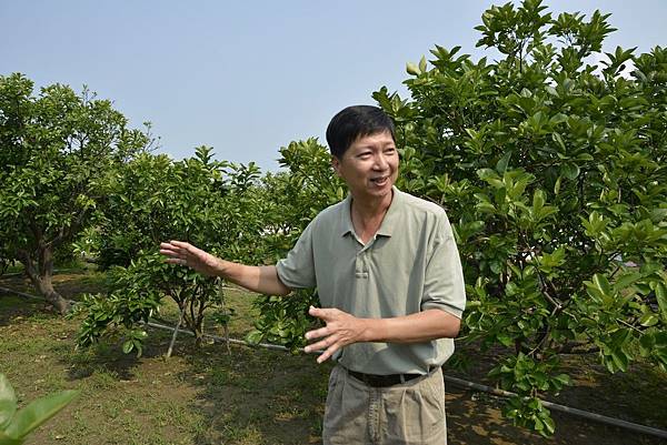 承接父親之前經營果園,栽種果樹以文旦為大宗約佔九成,其他有白柚及西施柚。栽種面積約三分多,分別坐落於廍崎頭和前班,種植用地附近皆為農作物區域,沒有受工廠污染。果園採草生栽培方式,以機械及人工控制雜草,涵養地層水份,防止土壤流失,所割除下來的雜草予自然腐爛轉換土壤的有機質,以提供果樹吸收養分,節省肥料的施用量,善用自然資源,以降低病蟲害減少噴灑農藥,達到政府法令要求,使消費者食用安心。